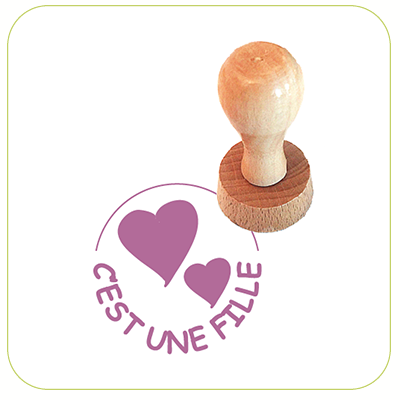 Tampon encreur "C'est une fille" Coeur. 25 € Tampon de 4 cm de diamètre en bois vernis. Accompagne vos correspondances avec une marque d'authencité. Une grande attention est portée à l'expédition. Un cadeau à recevoir ou à offir. Il existe une gamme d'encre de 5 couleurs. Authentifiez vos messages. En exclusivité sur Identytimbre. | |||||||